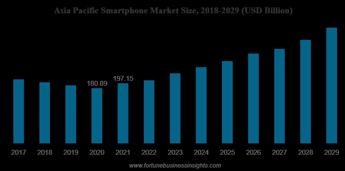 Fortune Business Insightsによると、スマートフォン市場規模は2021年に4,571.8億米ドルで、 2029年には7,925.1億米ドルに達すると予測されており、 2022年から2029年にかけて年平均成長率(CAGR)7.3%で成長する見込みです。この市場は、5Gの展開、AI対応機能、OEMの強力なイノベーション、そして新興国と先進国におけるデジタル化の加速によって牽引されています。